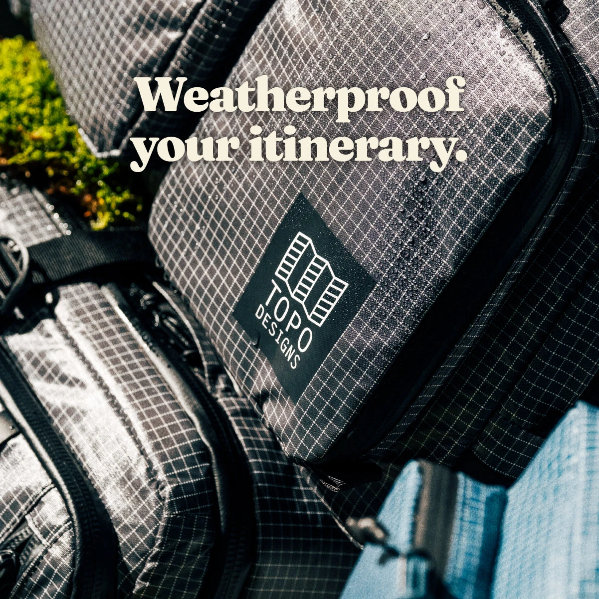 Materials: 400D 100% recycled nylon ripstop with WF-CS coating, 1000D 100% recycled nylon, 210D 100% recycled nylon liner
