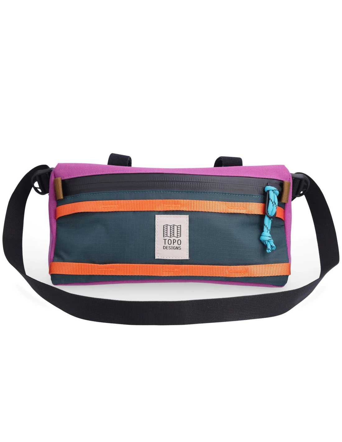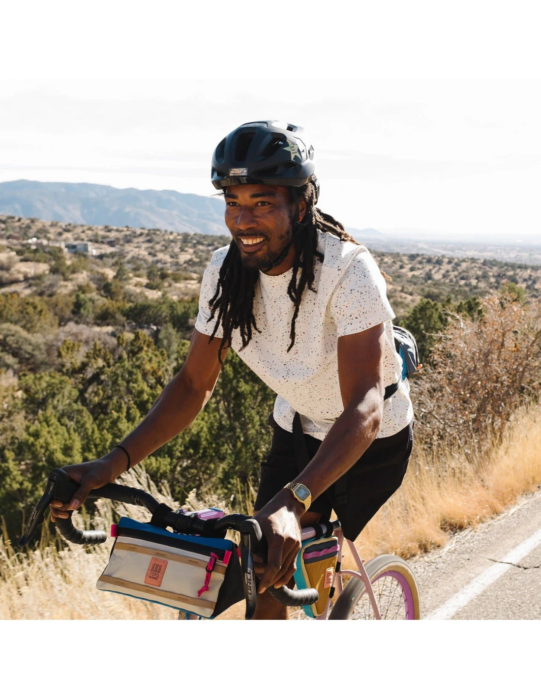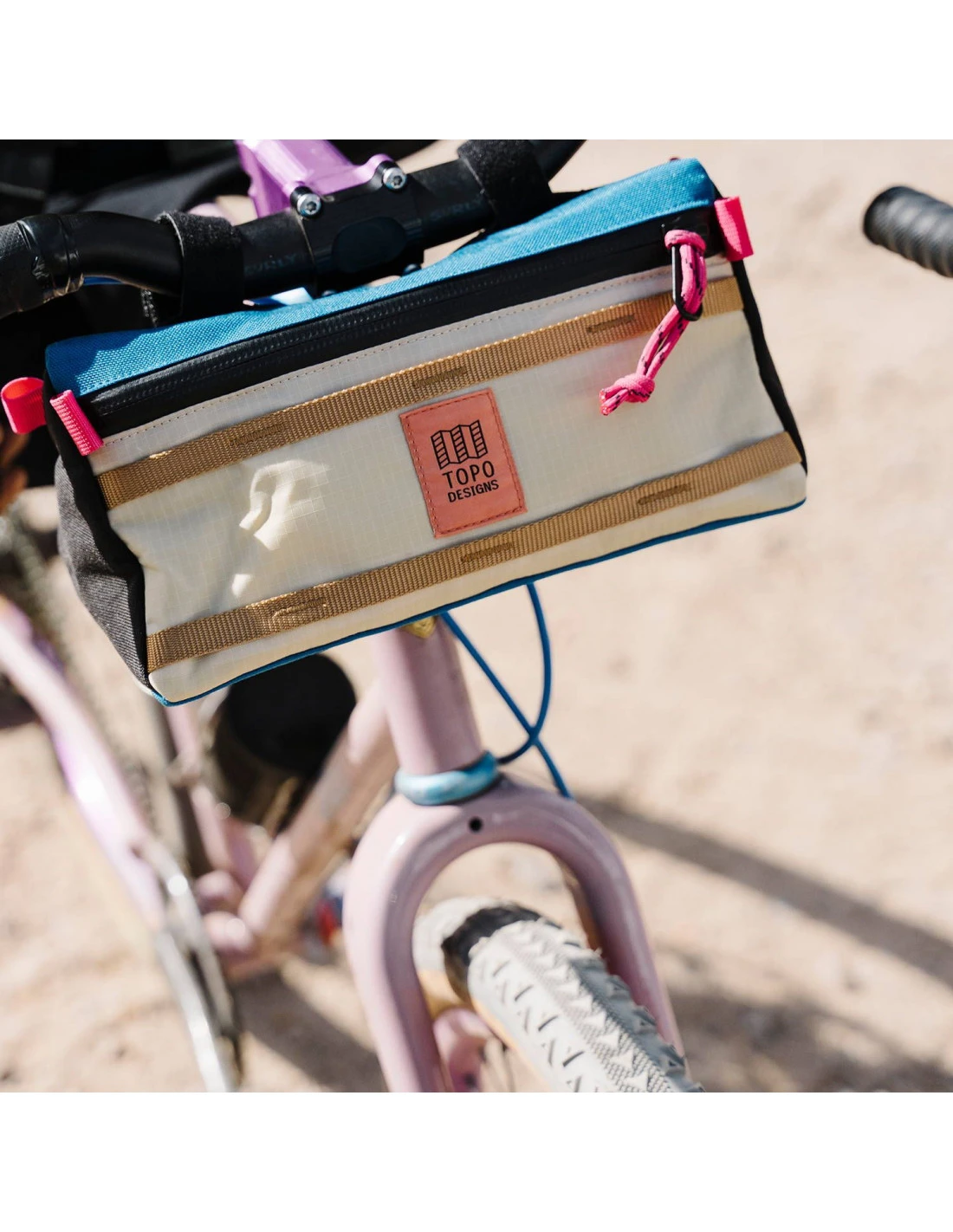 Bike Bag provides a place to stash everything from tools and tubes to an extra layer or a snack. Versatile enough to attach to the front bars of most bikes, Bike Bag has daisy chain webbing to easily clip a bike light.