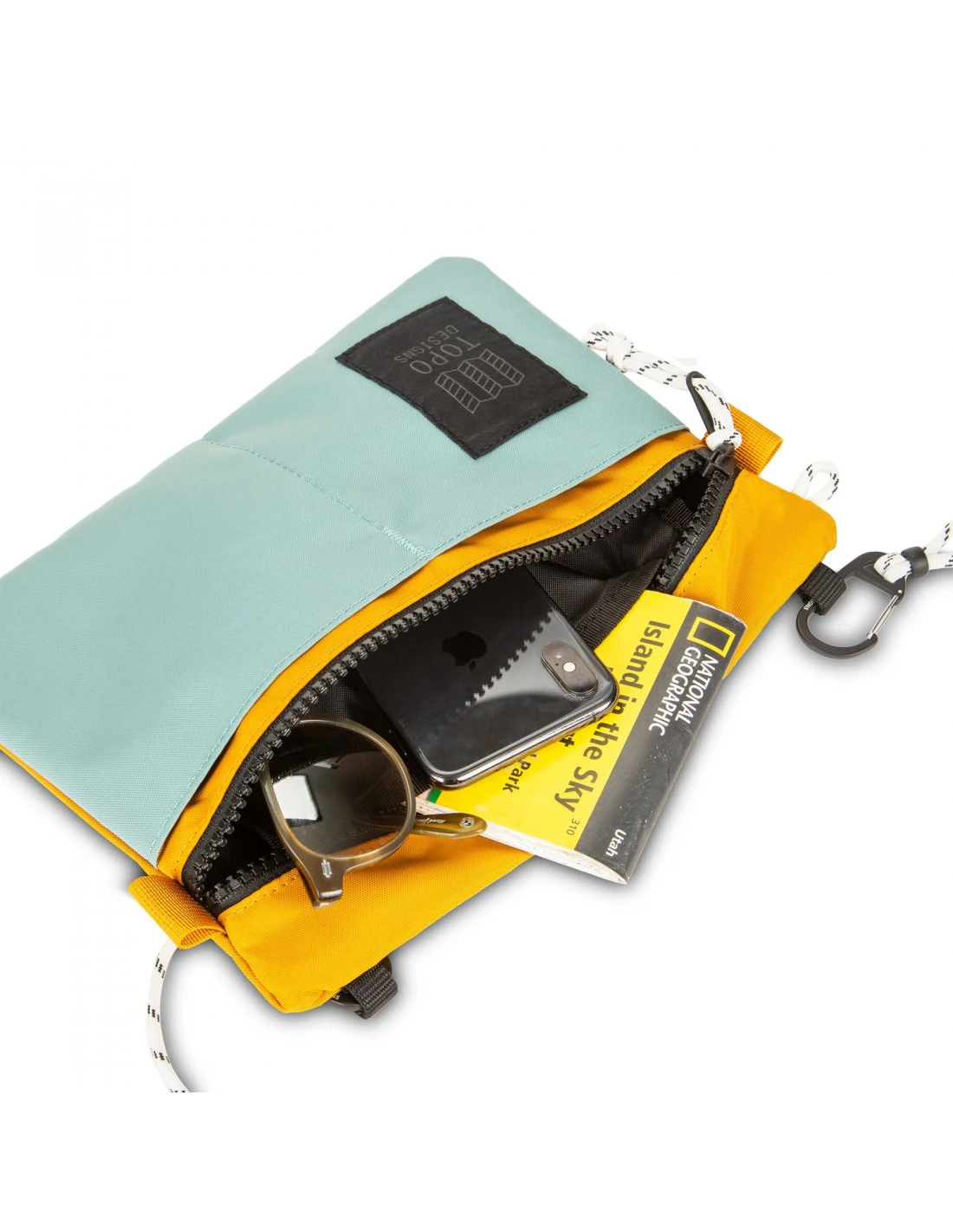 Topo Designs signature Accessory Bag is upgraded into a crossbody bag with the addition of an adjustable shoulder strap and external slip pockets for your phone or keys.