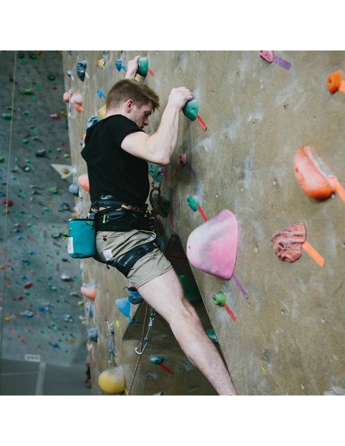 A bomber, well-built essential piece of gear. With a dropped cinch closure and large widemouth opening, this chalk bag allows you to easily chalk up while on the ground or halfway to the sharp end. A soft internal fleece lining means chalk stays inside the bag instead of falling out and all over your gear.