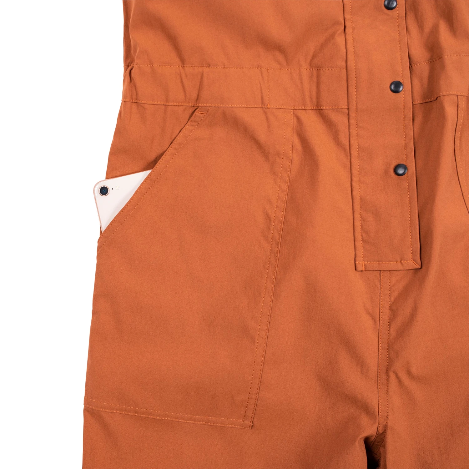 The easiest outfit ever. We built our Coverall as a nod to traditional workwear, keeping all of the classic elements like deep pockets and a full-zip opening with a snap cover, then added street-friendly features: 7/8 sleeves, hidden adjustments at the hem and waist, and back darts. A nylon/spandex blend with 4-way stretch keeps this essential jumpsuit comfortable all day while a DWR finish provides extra protection from the elements.