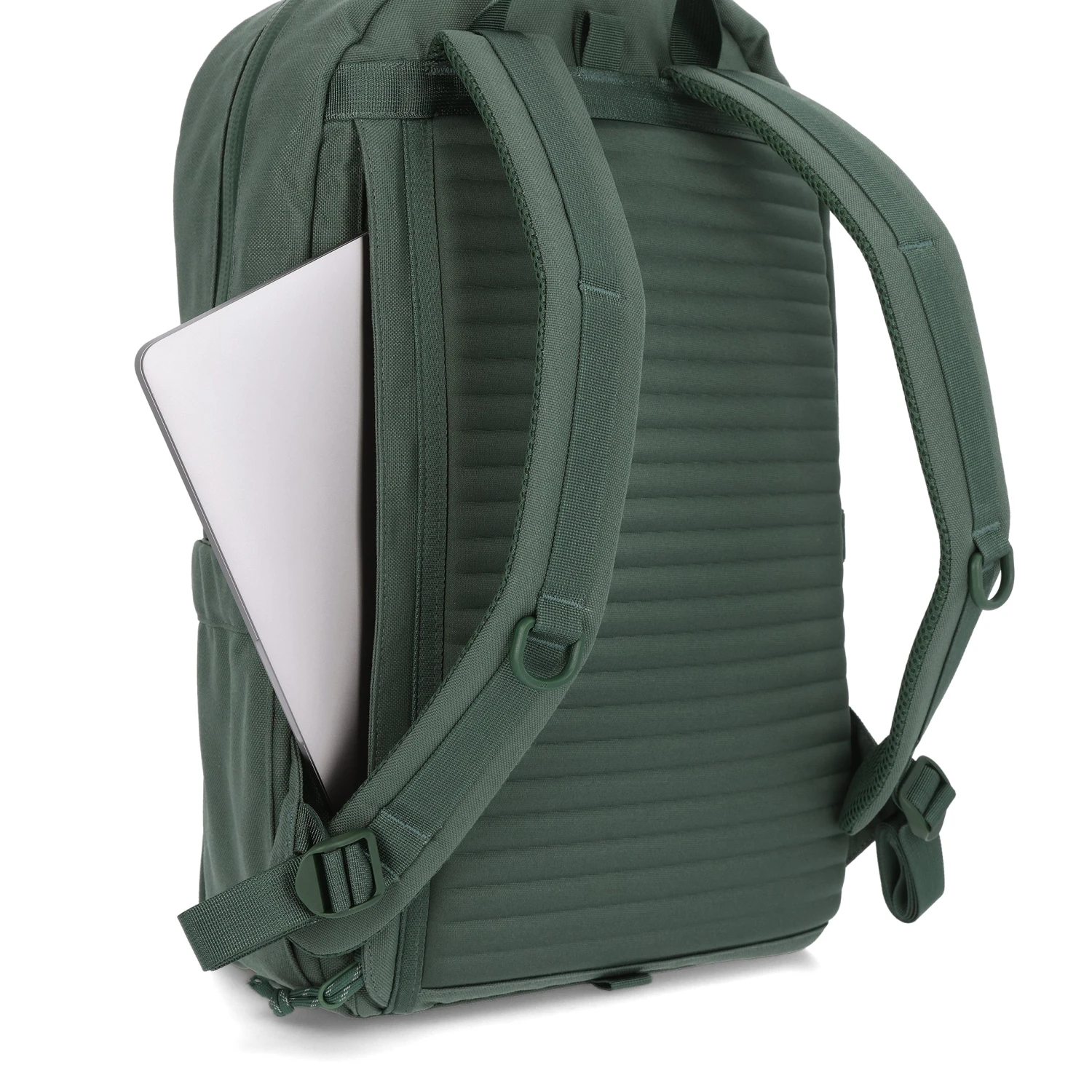 Made from durable 1000D recycled nylon with easy access to a large main compartment. An exterior front pocket allows for quick access to smaller items and an external padded laptop sleeve keeps your computer secure. A large internal sleeve can be used for notebooks, a laptop or other gear.