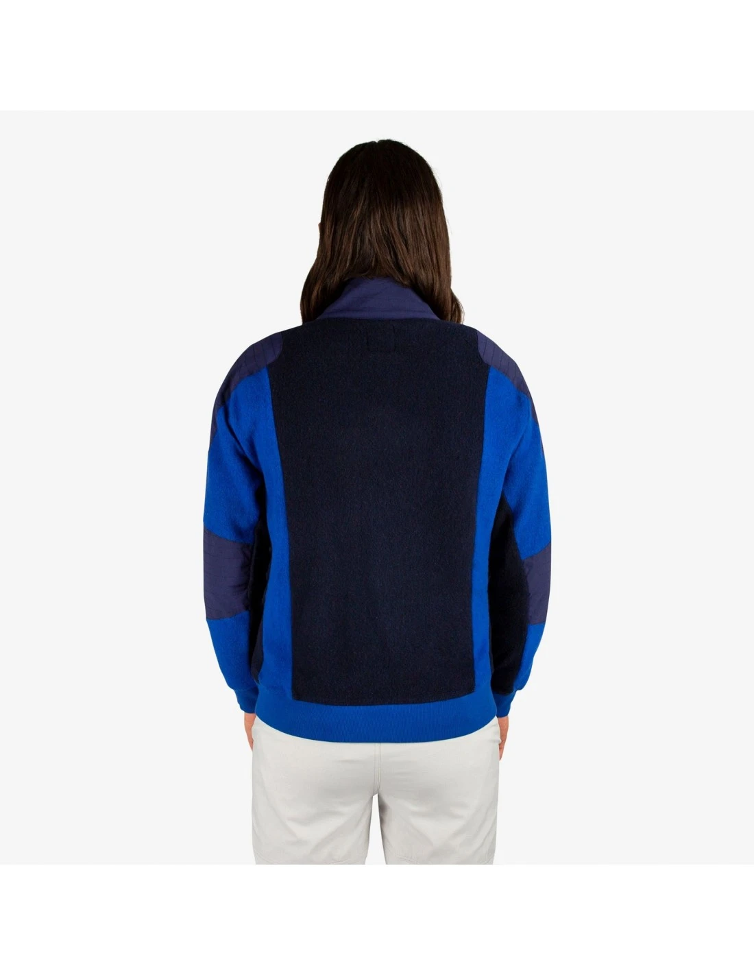 This classic-meets-tech piece utilizes our machine washable GlobalWool construction, made in part from 65% PCR Italian wool, and is finished with a DWR quilted tech overlay on the collar, shoulders and elbows.
