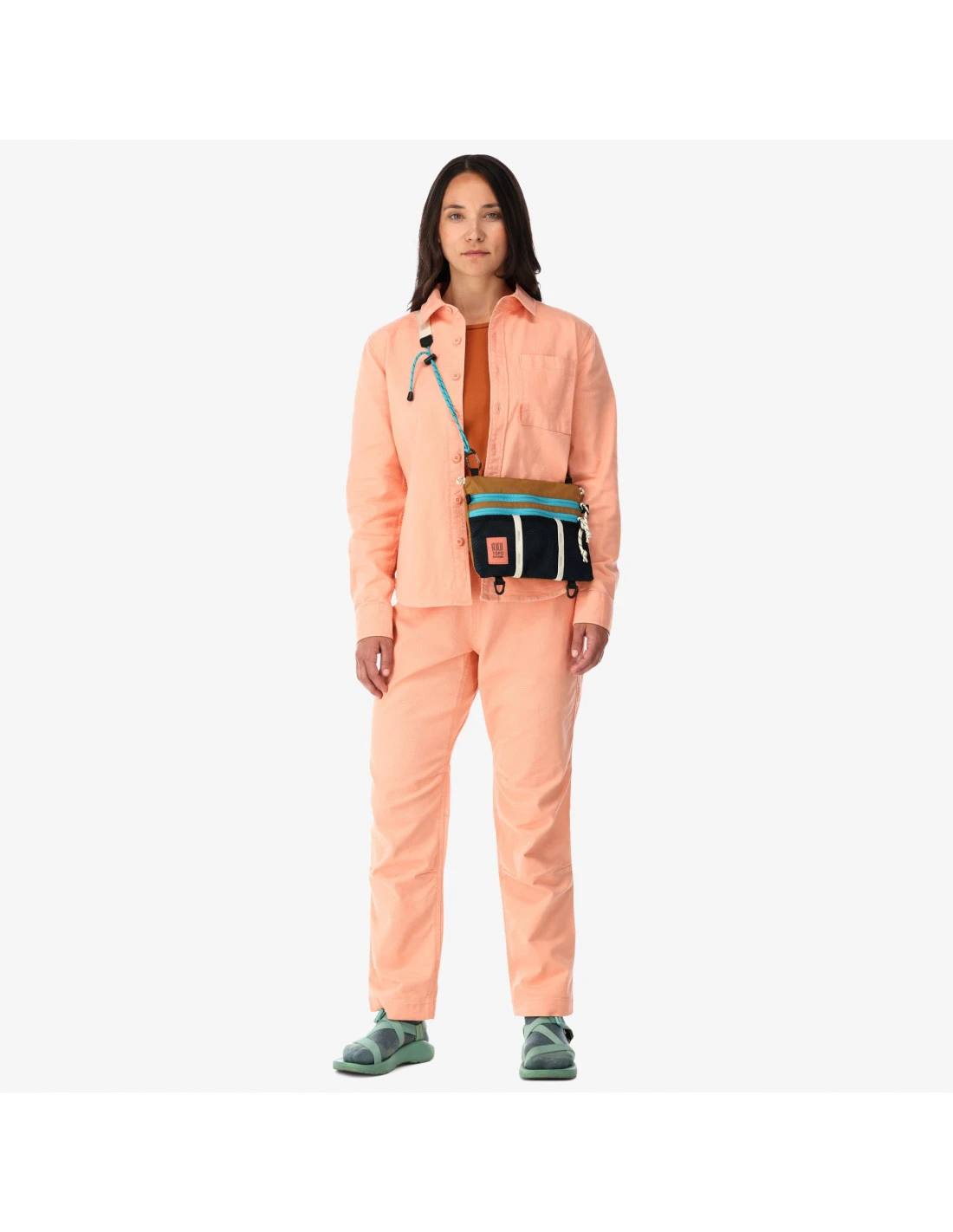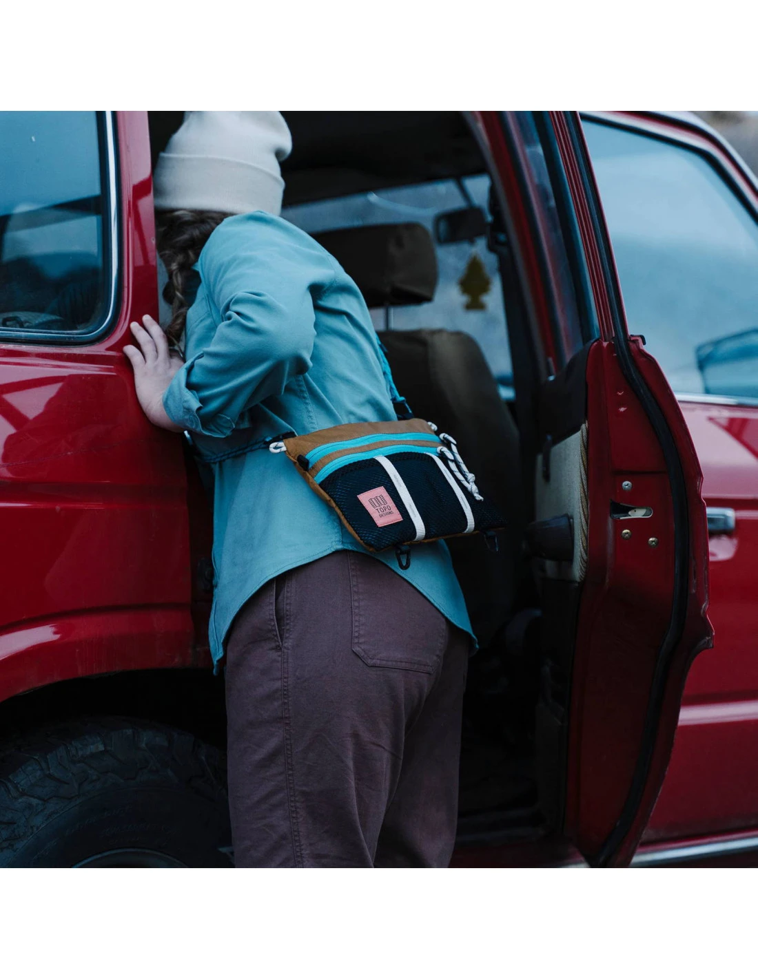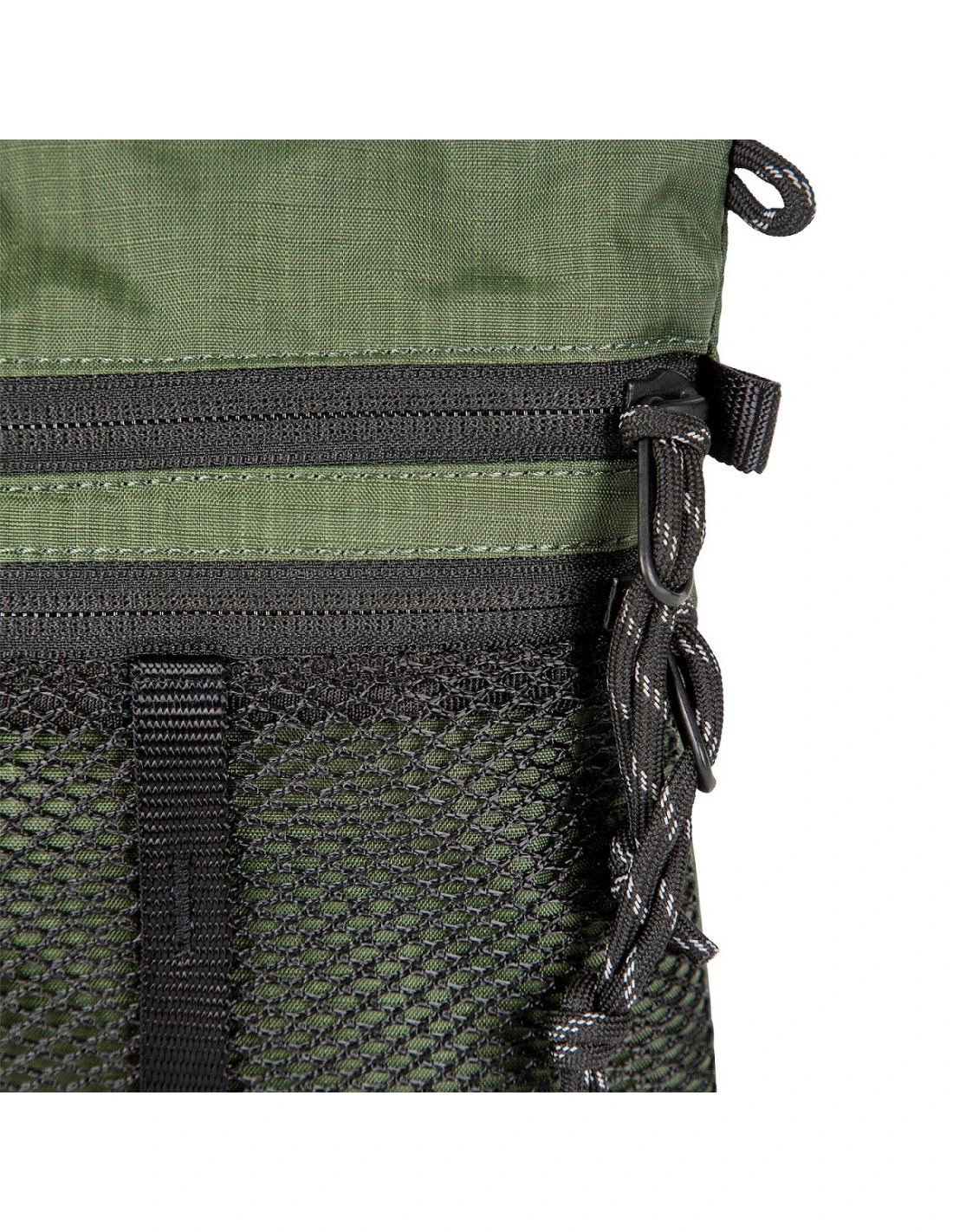 With an adjustable shoulder strap with custom carabiner attachments, multiple pockets (both internal and external) and secure YKK zippers, this 100% recycled nylon crossbody bag is ideal for travel, errands and everything in between.