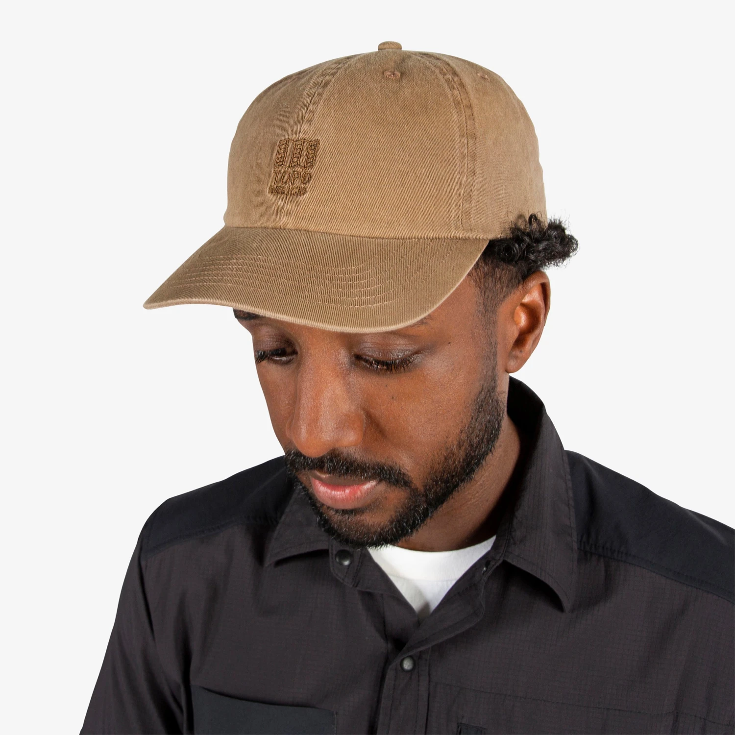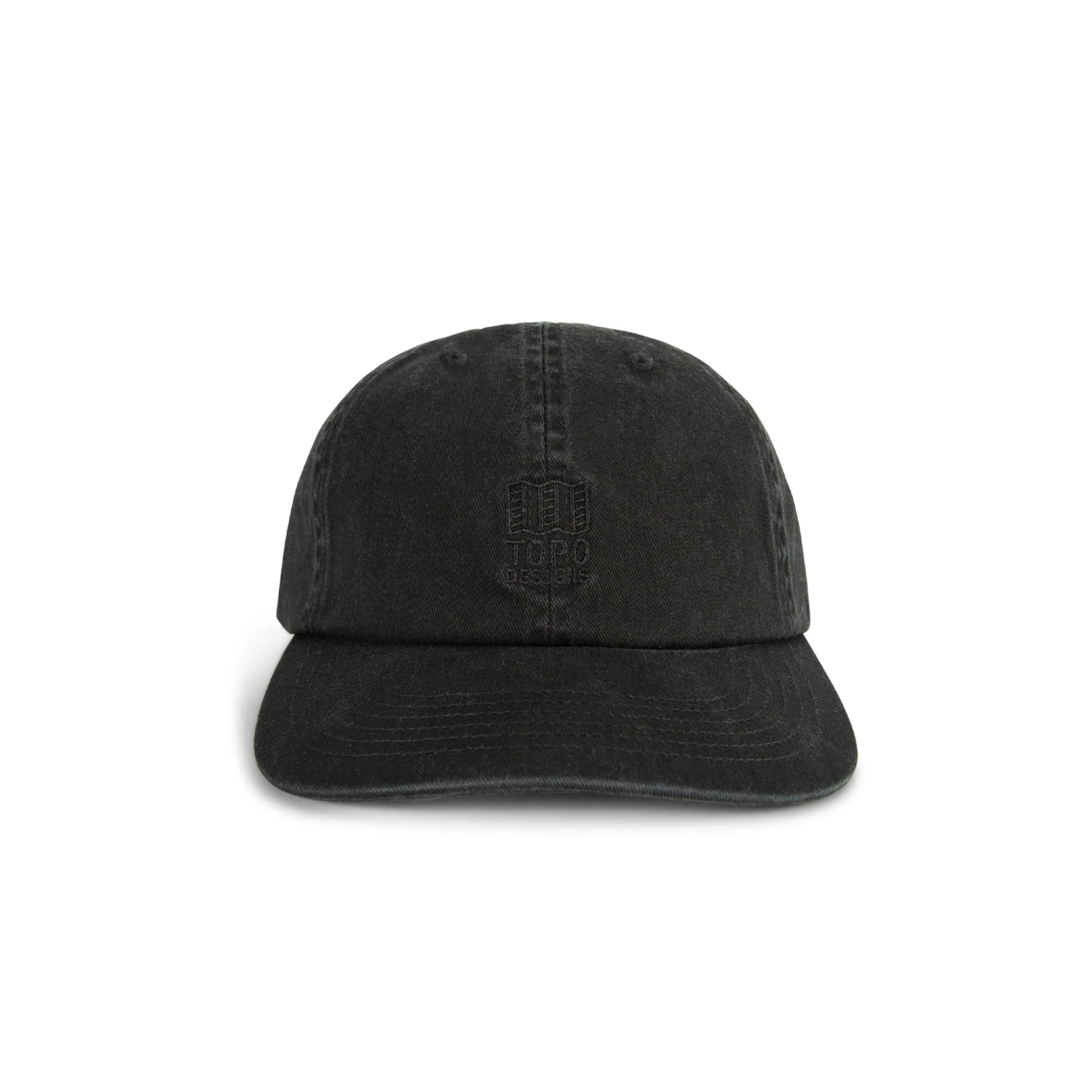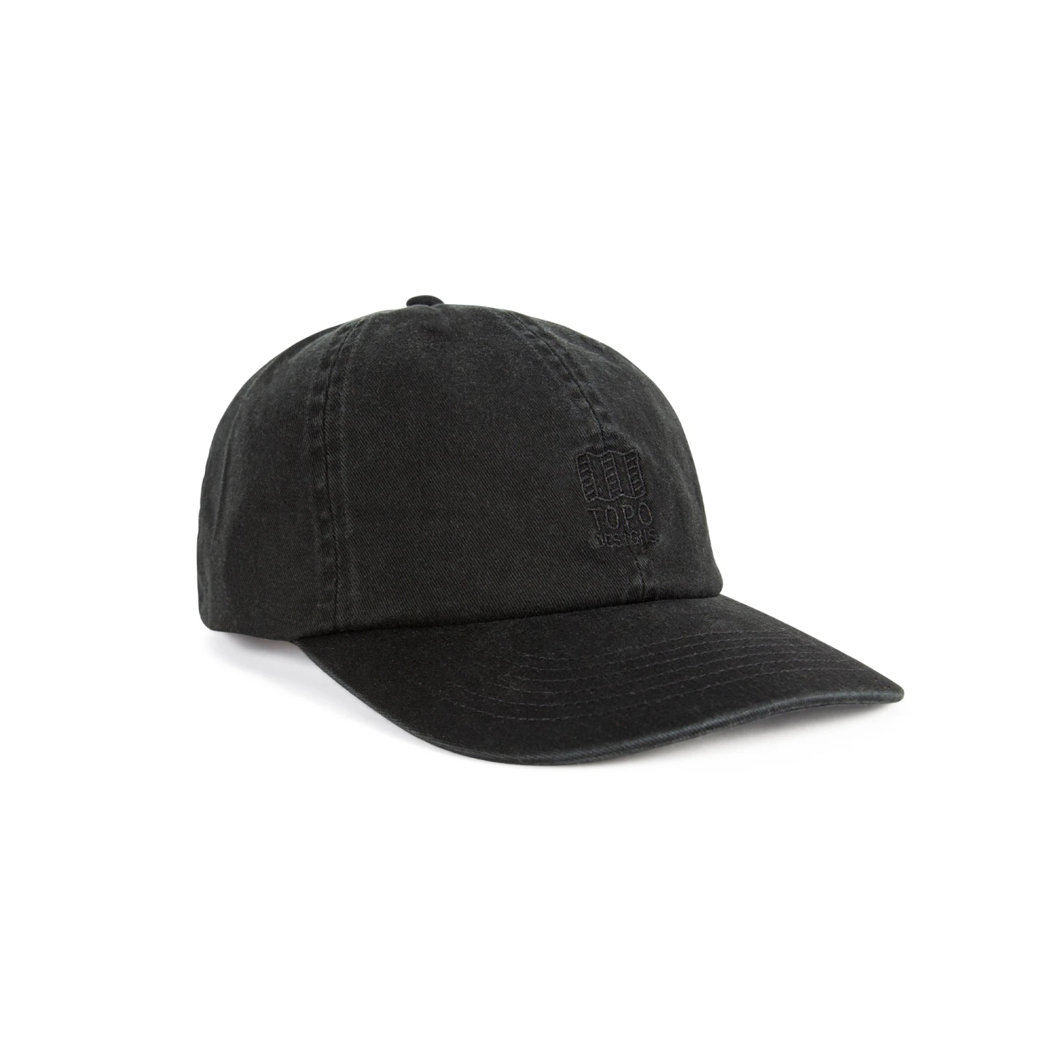 The garment washed Mountain Ball Cap features a 6-panel construction, a tonal Topo Designs embroidered logo, and an adjustable webbing buckle closure.