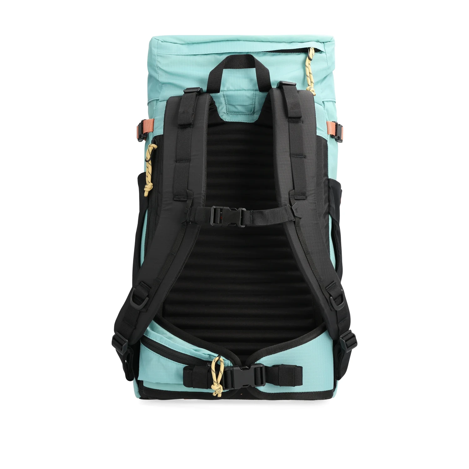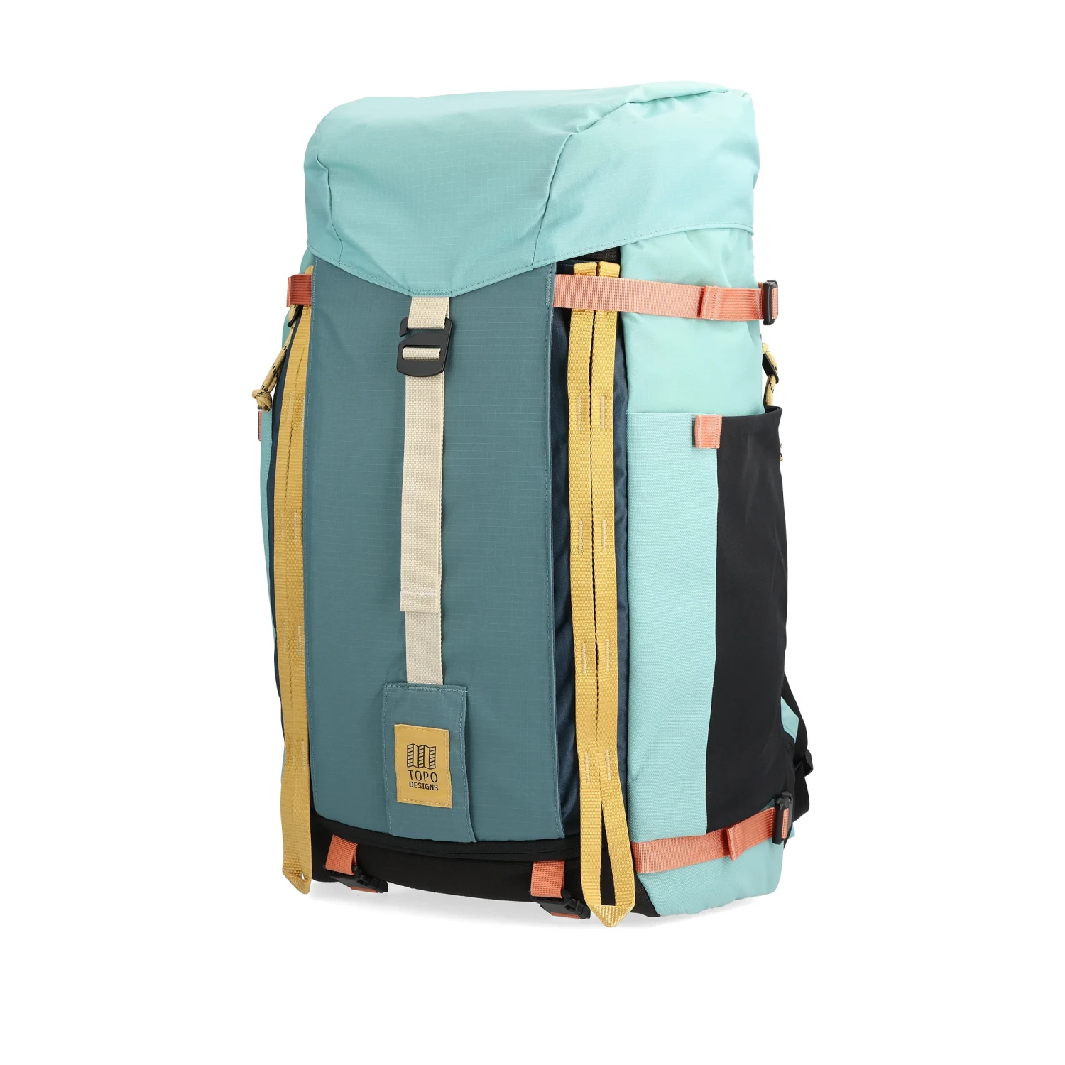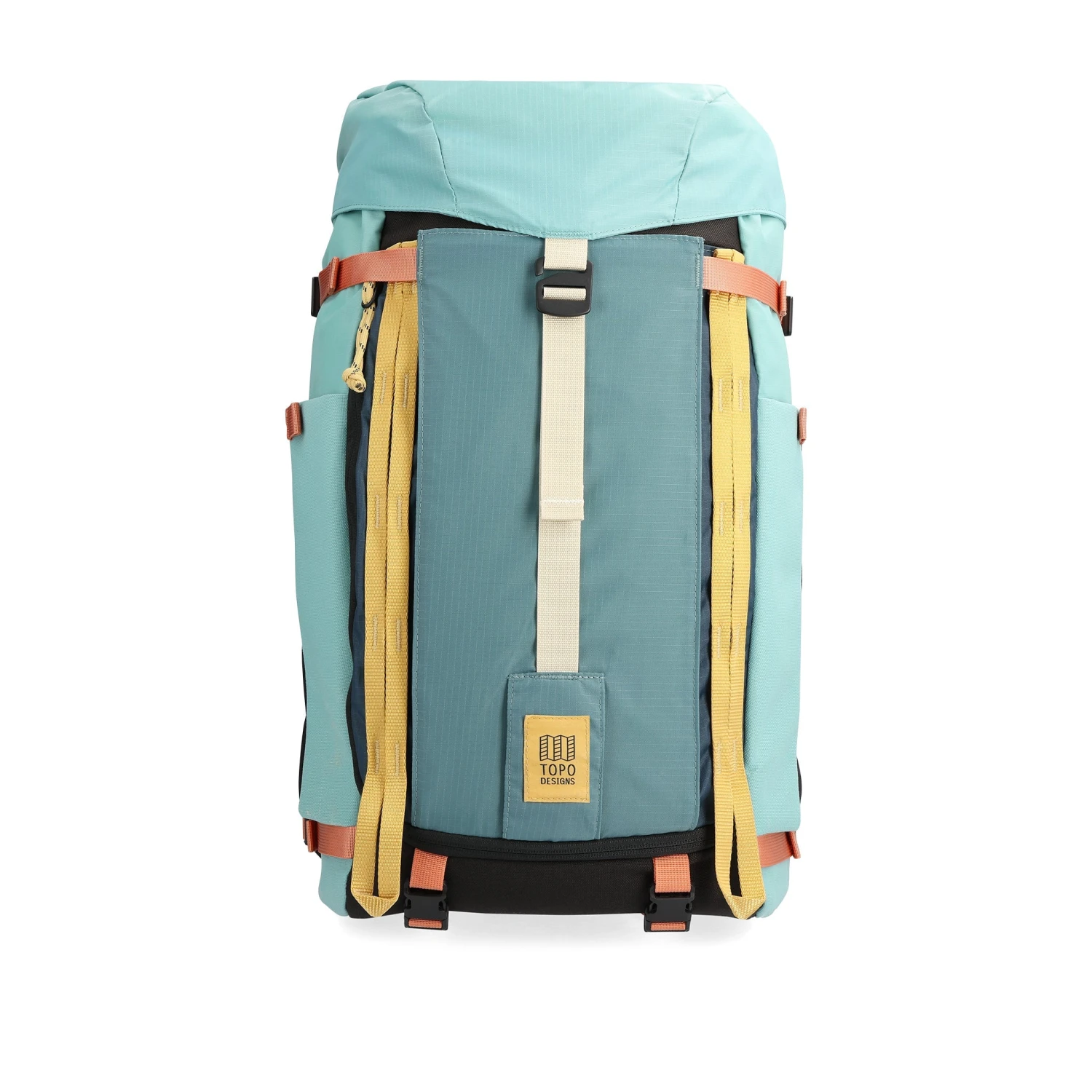 Spacer mesh back panel and shoulder straps make the Mountain Pack a more comfortable carry on the way up to climb, hauling around town or navigating the trail. Organization pockets make it easy to get through TSA, while large side pockets fit full sized water bottles. Four compression straps adjust to the load size, while durable daisy chain webbing is perfect for securing extra gear or attaching a bike light.