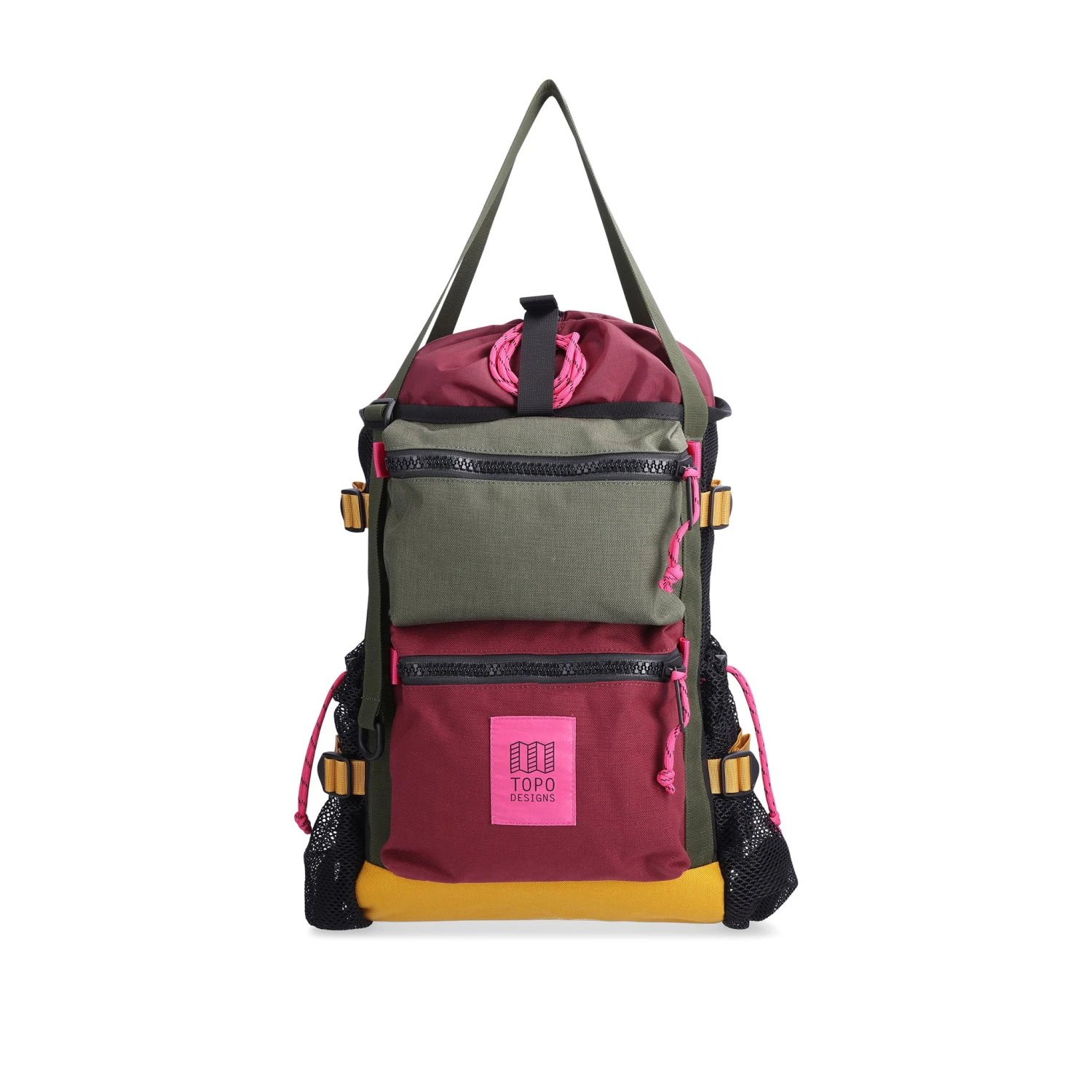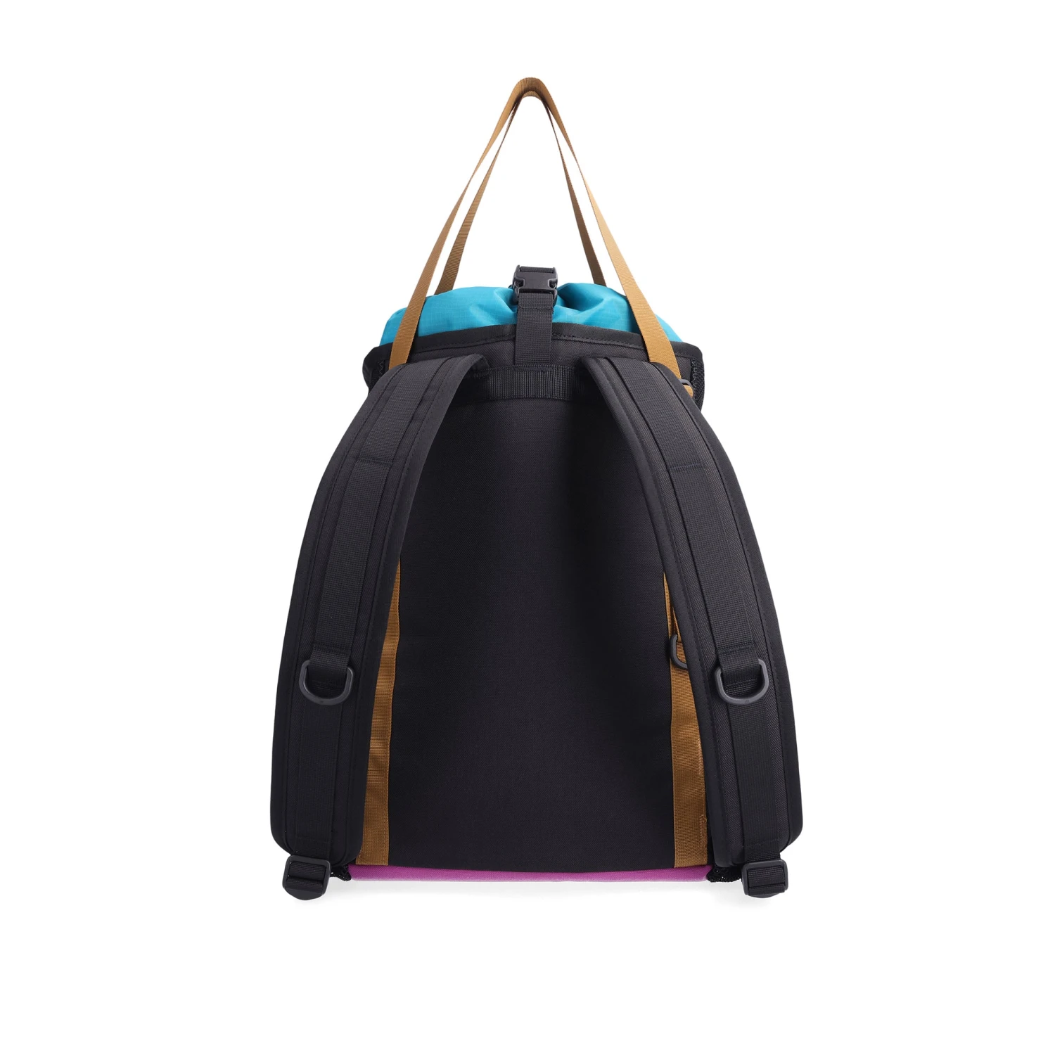 The River Bag functions as a daily carry bag or a weekend trip companion. The mesh sides allow for swim trunks, towels or climbing/hiking shoes to dry in transit, adjustable shoulder straps and backpack straps allow for a variety of carrying options to suit your taste.