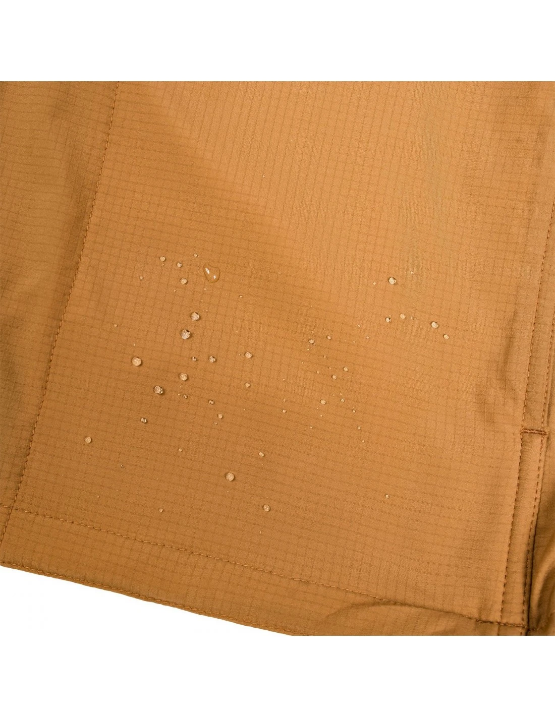 - Nylon ripstop with mechanical stretch and a water repellent finish